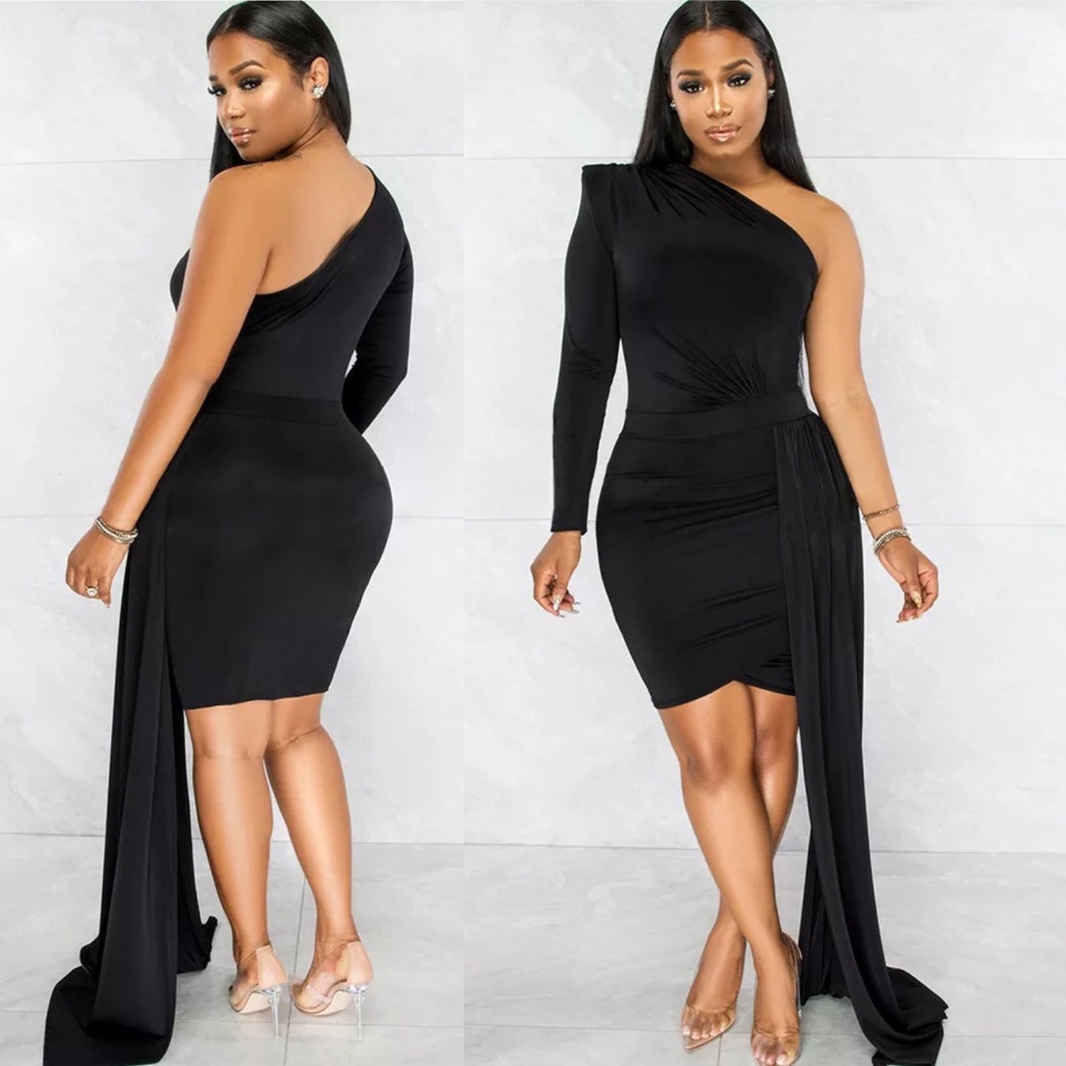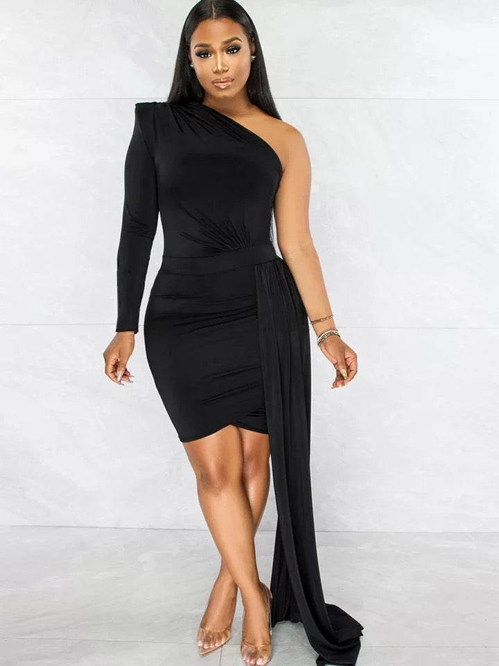 -One Shoulder Dress with side drape tale