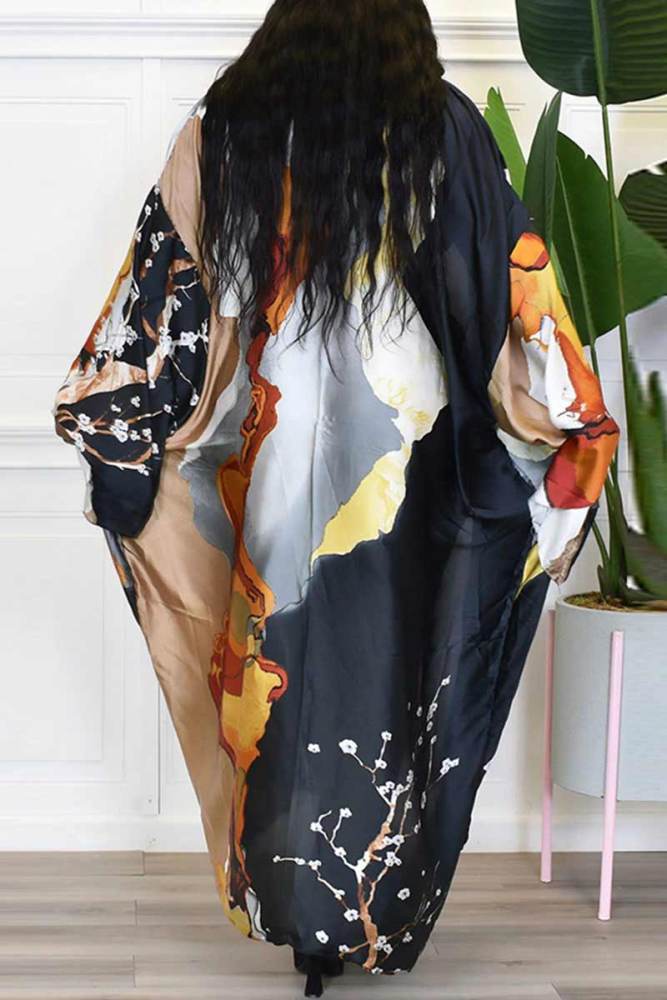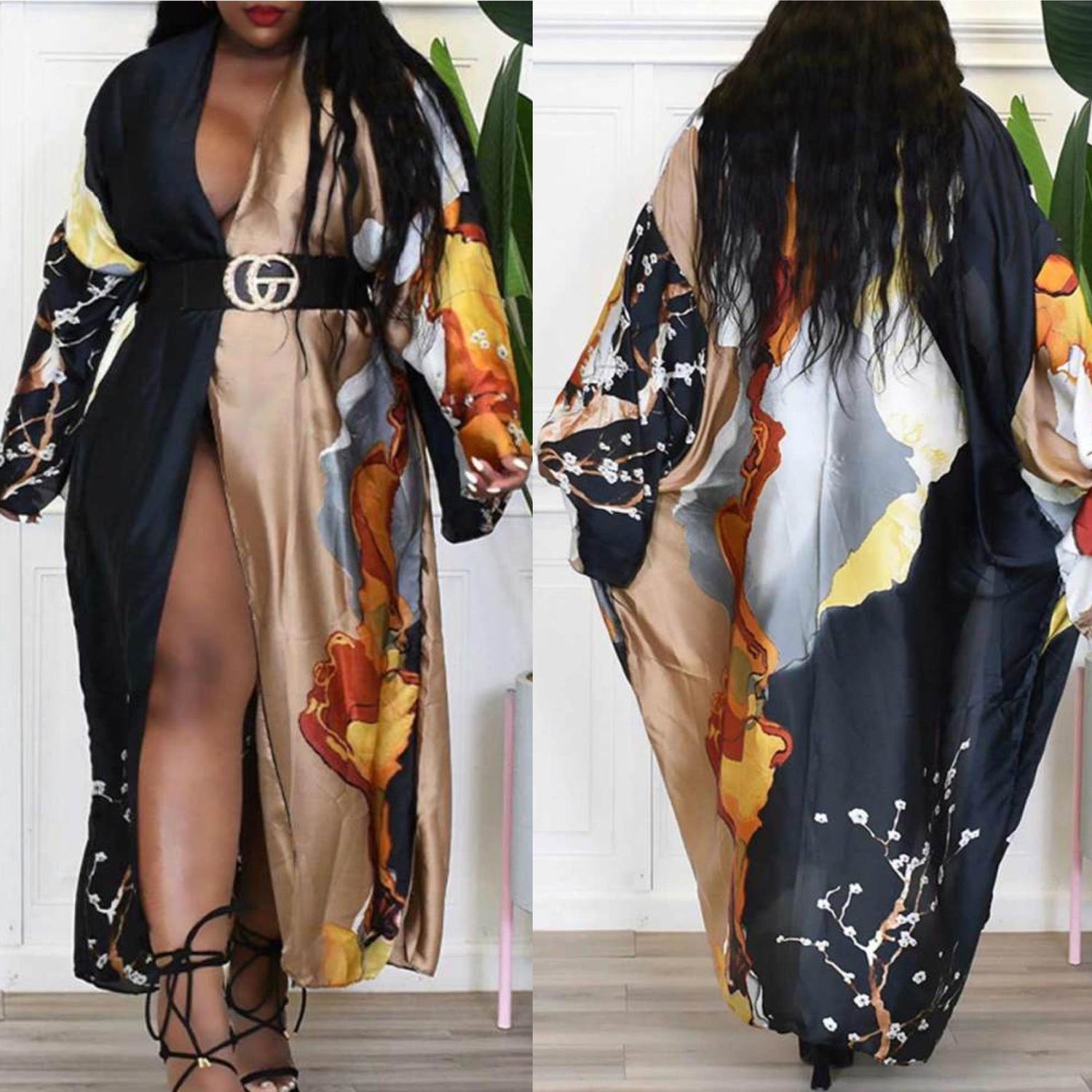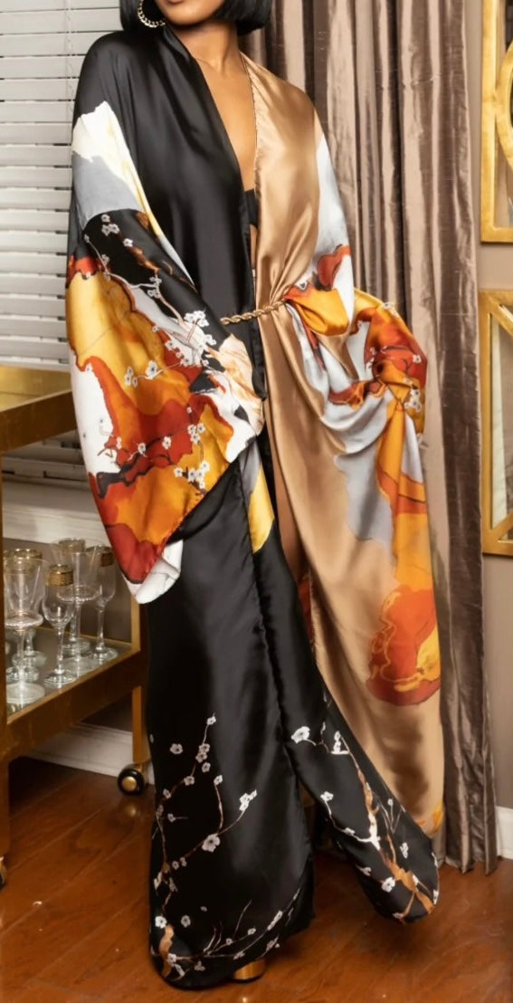 Flowy and Light Satin feel Kimono. Dress her up or down - your choice! This item is One Size (OS) and completely inclusive to all body types and sizes. (Tall Girl Friendly + fits up to a size 3x)