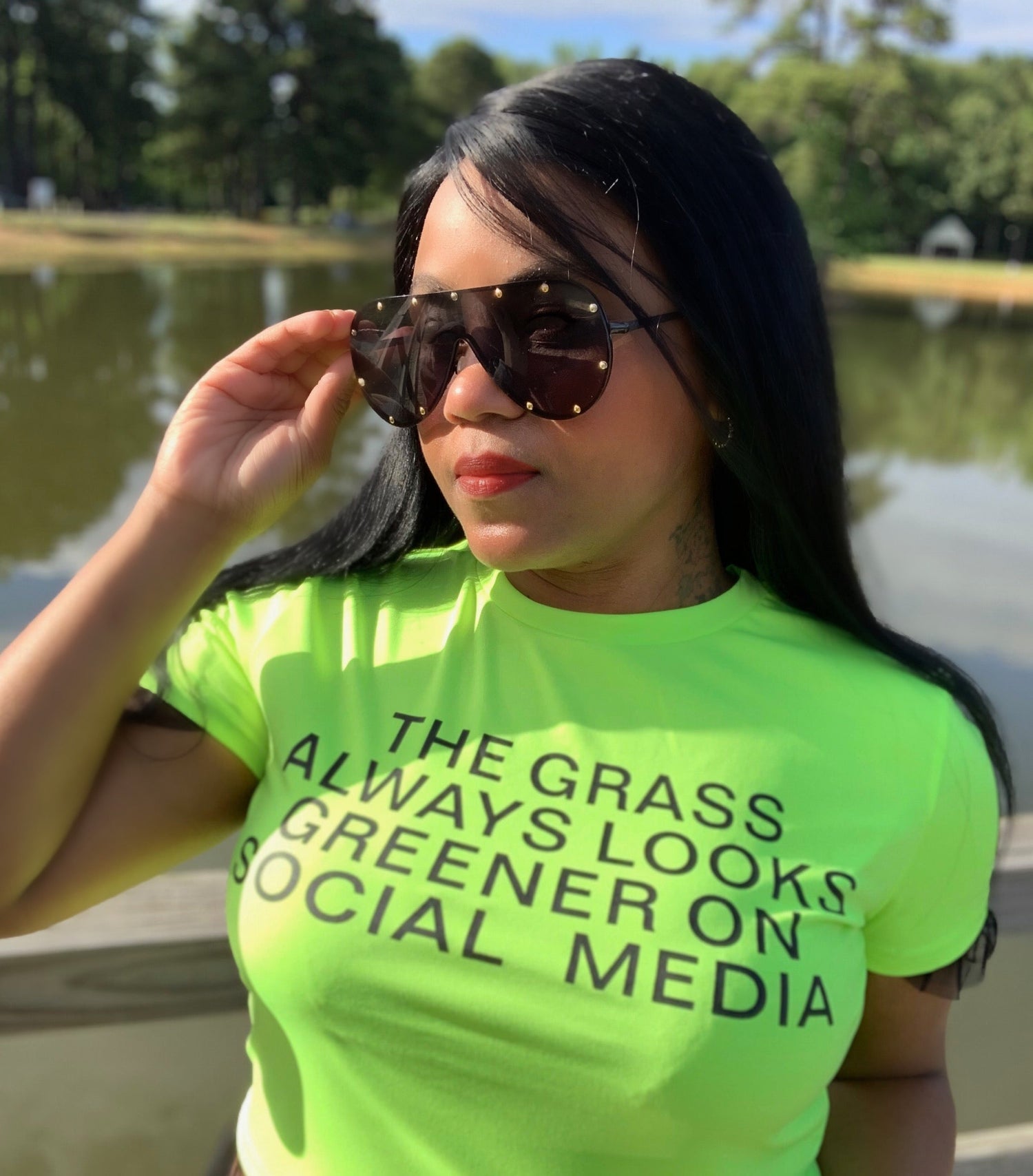 The Grass Always Looks Greener on Social Media- Electric Green